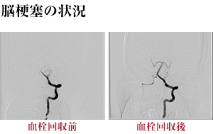 脳の血管が何らかの原因によって詰まり、血流が阻害される脳梗塞。脳梗塞を発症すると酸素が行き届かなくなり脳の組織が壊死してしまうため、可及的速やかな治療が必要です。脳梗塞発症から4時間半以内であればt-PA(血栓溶解剤)療法の静脈点滴が適応されます。しかしながら、t-PA療法は時間的制約が極めて短いため、発症後に時間が経っている場合はt-PA治療を行うことができません。こうした場合に有効な治療が、カテーテルを用いた血管内治療です。血管内治療は、脳梗塞発症8時間以内であれば血栓回収を行い血流の再開通が可能であることから、ここ近年は、脳梗塞治療におけるメインストリームとなっており、さらに今後は治療適応の時間が8時間から延長される見込みがあります。カテーテル血管内治療で得られるメリットは、一般的な外科手術(開頭手術)よりも短時間で治療が行えることと、低侵襲(身体の表面にカテーテルを通すために、わずか5ミリの切り傷だけで治療が可能)であることの2つ。これらによって、患者さんのストレスを大幅に軽減させることが可能になります。とくに外科的な手術に耐えられないような病気を持たれている方、たとえば心臓に持病を抱えていたり、呼吸器機能が悪いという方にとっては“やさしい治療”ということができます。それらのメリットを考えると、今後はますますカテーテル血管内治療の選択が増えていくものと考えられます。